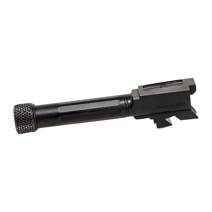 Faxon’s Match Series pistol barrels for Glock® G43 are machined 100% in-house from stress-relieved 416-R stainless steel. These barrels are then given a black nitride or PVD coating to increase lubricity, barrel life, and resistance to surface wear. All barrels are conventionally rifled to allow a wider range of ammunition to be used, including cast lead. The barrels drop into factory-spec slides with no gunsmithing required. Better-than-factory tolerances ensure a consistent, tighter lockup than OEM. SPECS Straight Fluted 1/10 Twist 416-R Material Black Nitride Finished Target Crowned Threaded barrel has 1/2"x28 thread DISCLAIMER: “GLOCK” is a federally registered trademark of GLOCK, Inc. and is one of many trademarks owned by GLOCK, Inc. or GLOCK Ges.m.b.H. Neither Brownells nor this site are affiliated in any manner with, or otherwise endorsed by, GLOCK, Inc. or GLOCK Ges.m.b.H. The use of “GLOCK” on this page is merely to advertise the sale of GLOCK pistols, parts, or components. For genuine GLOCK, Inc. and GLOCK Ges.m.b.H. products and parts visit www.glock.com.