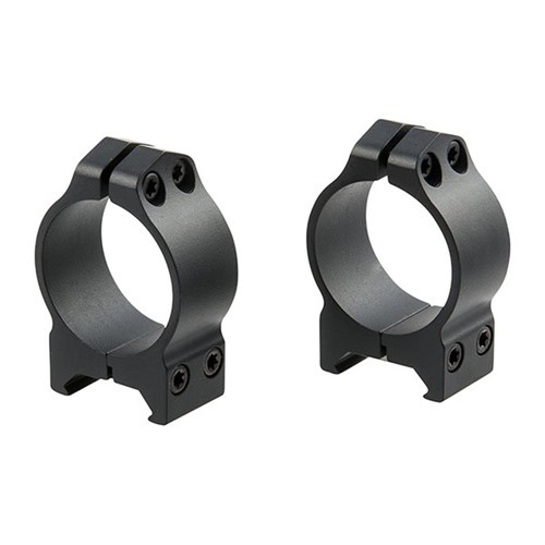 Maxima Fixed Rings are designed to be the strongest, most durable fixed mount system available. Typical steel scope mounts in this class use only 2 screws per ring, have a narrower clamping band and in most cases only absorb recoil in the front ring. Maxima Fixed rings utilize 4 T-15 Torx style socket cap screws for secure optics mounting. The Maxima Fixed series fit Weaver style cross slot bases and incorporate a Warne square stainless steel recoil control key in both the front and rear rings. This ensures a “no slip” positive recoil surface across the entire slot of the base and is capable of withstanding the heaviest of recoil. The Maxima square recoil key also protects against swaging or peening of the base when used on softer or less durable materials. The Maxima Fixed ring band width is also substantially wider which offers more ring to scope clamping area to hold the optics firmly in place. The Maxima Fixed Rings are available in a durable DuPont power coat finish in either gloss or matte black and also an electroless silver nickel finish. Warne Maxima scope rings are designed to fit Warne bases as well as all Weaver cross slot and Mil-Spec Picatinny style bases and rails.