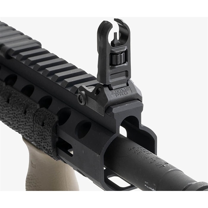 MAGPUL® PRO HOODED FRONT SIGHT FOR AR-15 The MBUS (Magpul® Back-Up Sight) Pro Sight – Front, Hooded is an all-steel, back up front sight. The hooded front sight arm provides a profile that aids in faster sight acquisition while minimizing snagging. It’s also just as durable as Magpul’s other Pro sights thanks to a corrosion-resistant QPQ finish that delivers maximum functionality and strength with minimum bulk. When the Hooded Pro Front Sight is paired with the dual aperture, windage-adjustable MBUS Pro Sight – Rear, it can act as a diopter style sight (aperture within an aperture) depending on its placement in relation to the rear sight. Used with the MBUS Pro Sight – Rear, the toolless, elevation-adjustable MBUS Pro Sight set excels in all applications, including when mounted on rail-height gas blocks. Detents keep the Hooded Sight at standard AR sight-height when deployed, and it remains out of the way when it’s stowed (measuring 1.71" from the sight base’s leading edge to the top of the hood). Two front-post widths (.040” match or standard .060”) are available to fit shooters’ precision needs (the narrower width front is also compatible with most IR aiming laser and light installations for the professional user). Just like all Magpul’s other sights, it’s made in the USA. FEATURES ALL STEEL CONSTRUCTION Finished with QPQ salt bath nitride for extreme resistance to wear and corrosion 0.432" HEIGHT ABOVE RAIL AT TALLEST POINT AND COVERS LESS THAN 1-3/4" OF RAIL WHEN STOWED STANDARD AR SIGHT HEIGHT WHEN DEPLOYED Positive detents in both the up and down positions as well as on the elevation knob Round hood protects sight post and acts as an 'aperture within an aperture' with a Rear MBUS Pro ELEVATION ADJUSTMENT KNOB Elevation adjustment knob – no tools required Steel, rectangular sight post selectable between Match and Standard widths: 0.04” Match width for increased precision 0.06” Standard width for maximum visibility SPECS Position: Front Height above rail, stowed: ~0.43 in. max Length, stowed: 1.7 in. Weight : 1.5 oz. Compatibility: Mounts on any MIL-STD-1913 Picatinny/STANAG 4694 rail including receiver-height gas blocks ELEVATION ADJUSTMENT ~1 MOA (1.131”/100 m) per click with a 14.5" sight radius ~0.7 MOA (0.820”/100 m) per click with a 20" sight radius