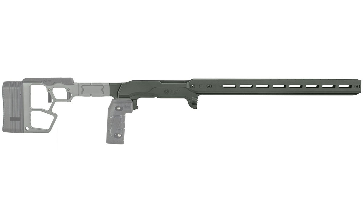 Die MDT ACC Premier GEN2 Chassis bietet dir eine kompakte 15” Forend – ideal für Läufe ab 17” – mit einem breiten, dicken, flachen Profil, das Flex und Torsion eliminiert. Egal, ob du von Barrikaden oder PRS-Requisiten schießt, du erhältst eine rocksolide, verschiebungsfreie Plattform.