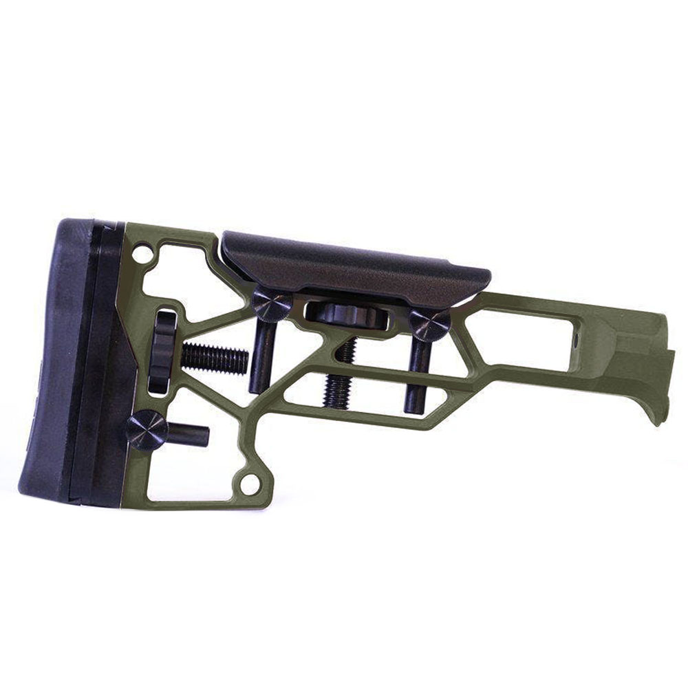 Die werkzeuglose Anpassung des MDT Skeleton Rifle Stock hebt deinen Komfort und deine Leistung als Schütze auf ein neues Level. Mit horizontalen, vertikalen und Neigungsanpassungen für die Wangenauflage und die Schulterstütze sorgt dieser Stock für eine perfekte Passform in deiner Schießposition.