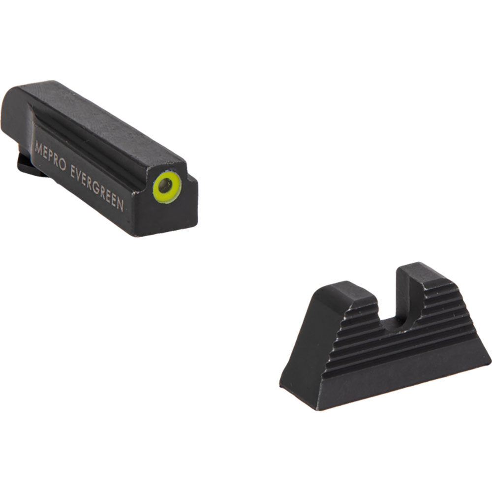 Meprolight bietet auch für ausgewählte Pistolenmodelle die Mepro Evergreen™ superhelle LED-Frontvisierung mit U-förmigem hinteren Visier (nicht beleuchtet) an, die eine dramatische Steigerung der Trefferwahrscheinlichkeit bei den Nutzern gezeigt hat.