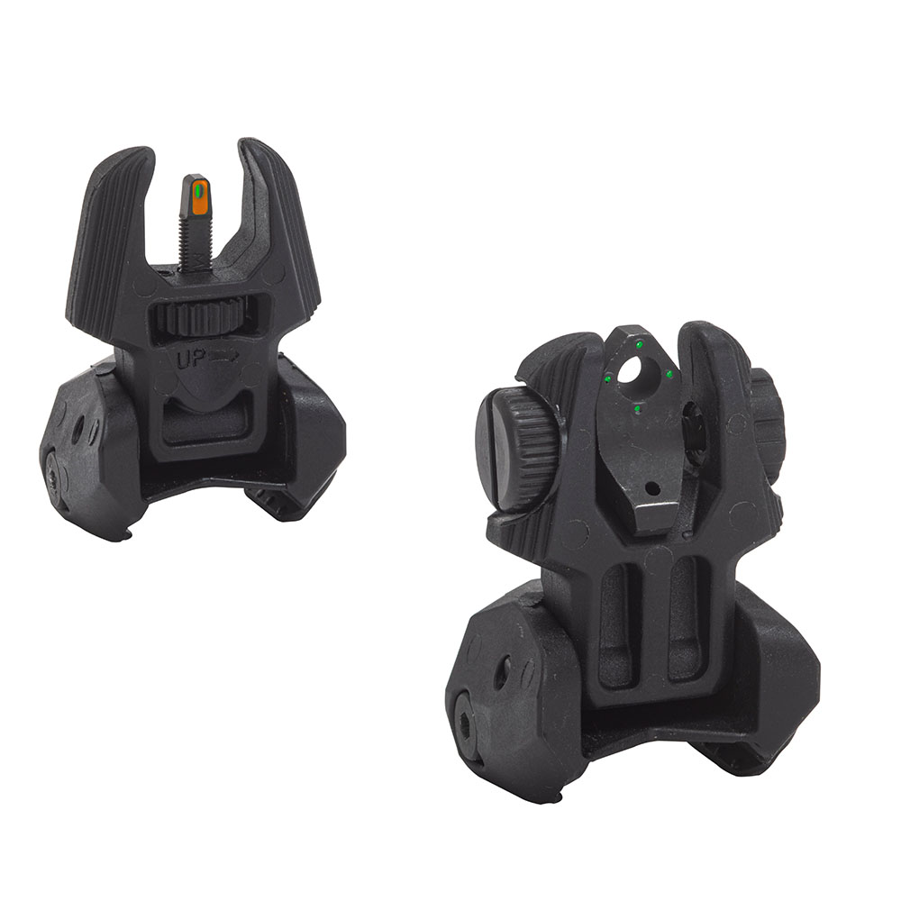 Die selbstbeleuchteten Front- und Rückvisiere sind so konzipiert, dass sie dir sekundäre Visiere bieten, falls die primären Optiken ausfallen. Du kannst sie auch als primäres Visier verwenden.