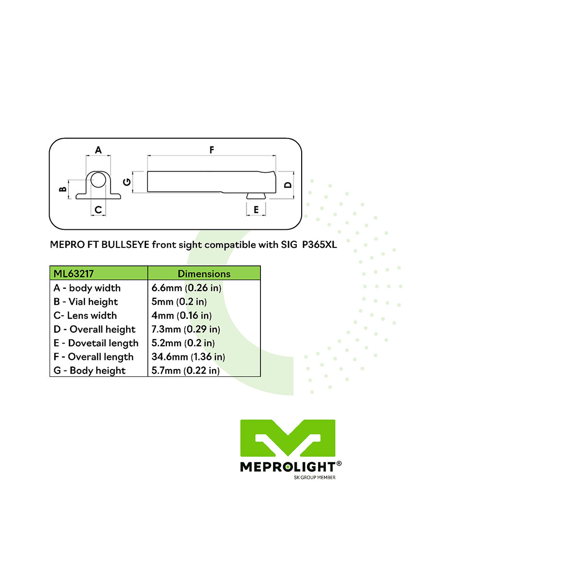Die MEPRO FT BULLSEYE FRONT SIGHT und die MEPRO FT BULLSEYE SIG P365XL sind das Ergebnis eines ingenieurtechnischen Meisterwerks. Diese Reflexvisiere sind die kleinsten und hellsten ihrer Art für Pistolen und machen dich zu einem schnelleren und präziseren Schützen.