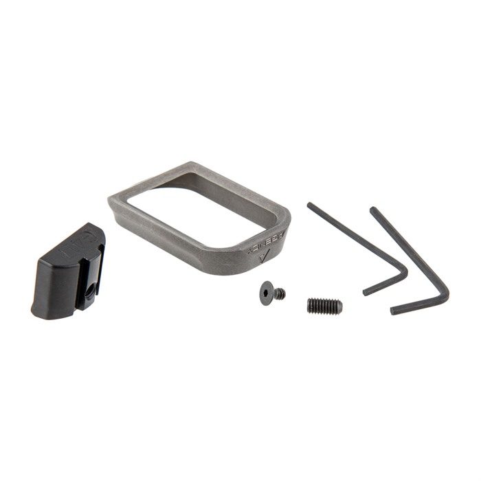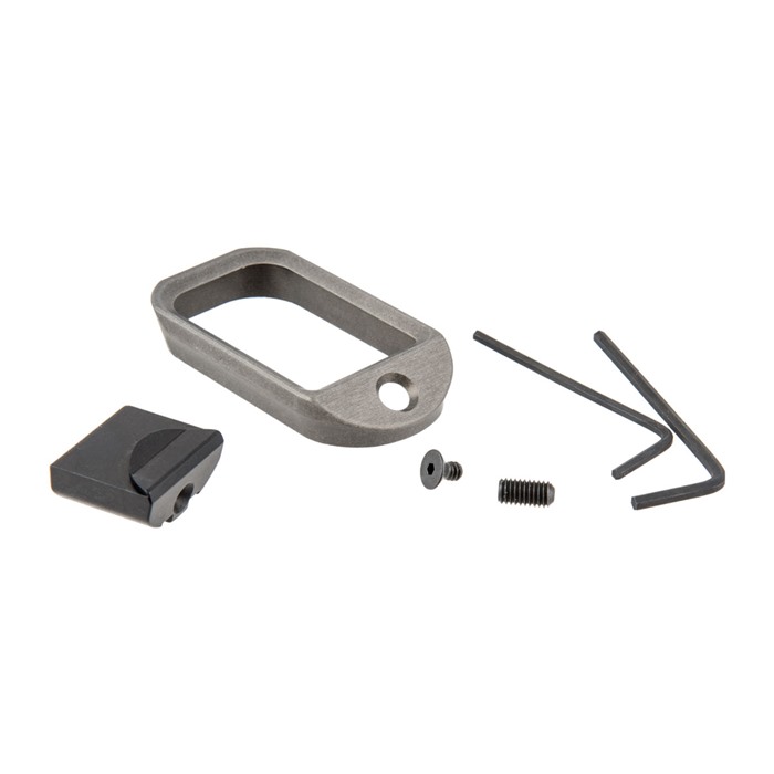 Im Lieferumfang enthalten sind ein Griffstecker, der Magwell, Set-Schrauben und Inbusschlüssel für eine schnelle Installation.