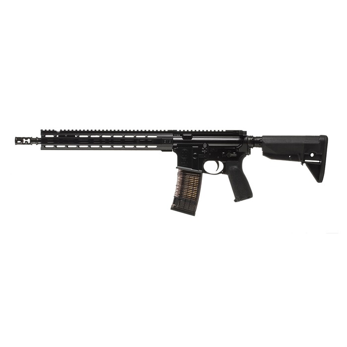 MK114 MOD 1-M 223 Wylde Semi-Auto Rifle SPECIFICATIONS: Operating System: PWS Long Stroke Piston System, 3 setting Adjustable Gas Regulator Caliber: .223 Wylde Barrel Length: 14.5” 41V50 Steel Gas System Length: Mid-Length Barrel Twist Rate: 1:8 Muzzle Velocity: 2921 fps Muzzle Device: PWS FSC 556 (pinned & welded) Upper Receiver: PWS Proprietary Piston Upper, T6 7075 Forged, Anodized Handguard: PWS M-Lok™ 13.624” Handguard (1.7” width, 2.25” height) Charging Handle: Radian Raptor™ Ambidextrous Charging Handle Lower Receiver: PWS MK1 MOD 1-M Multi-Caliber Lower, 7075-T651 Hard coat anodize, per Mil 8625 Type lll Class 2, AR-15 Compatible Trigger: Mil-Spec Enhanced, PTFE Coated. Trigger Pull Weight: 5.5 – 6.5 lbs. Buffer Tube: PWS Enhanced Buffer Tube with ratchet lock castle nut and end plate set with built-in QD mount Buffer: PWS Enhanced H2 Steel Body Buffer Furniture: Bravo Company USA® Buttstock and Pistol Grip