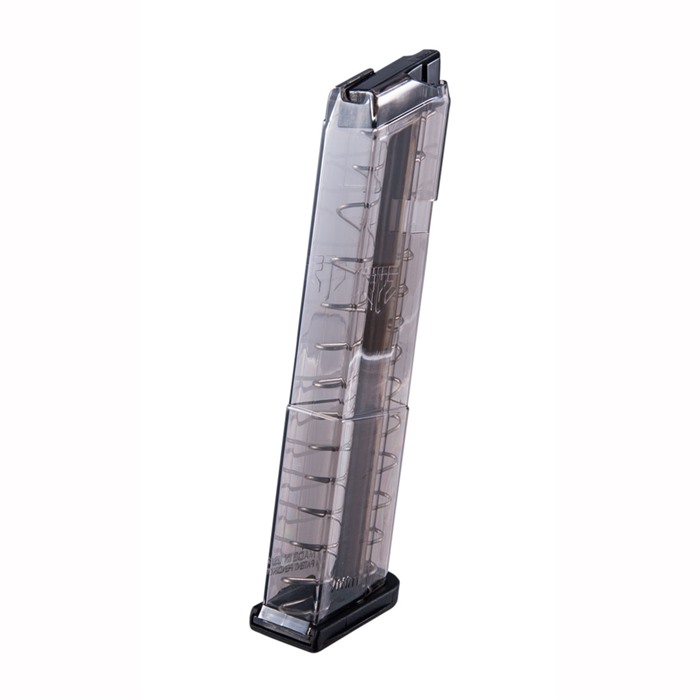 Die ETS durchsichtigen Polymer-Magazine für die Glock 43 kombinieren leichtgewichtige Leistung mit der Zuverlässigkeit von OE. Die durchsichtigen Magazin-Körper ermöglichen es dir, sofort zu sehen, ob ein Magazin geladen ist oder nicht.