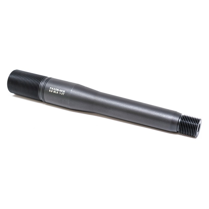 Faxon Firearms is proud to partner with Q on the development of barrels for their revolutionary new round, 8.6 Blackout (8.6 BLK). With barrels employing an impressive 1:3 twist rate, 8.6 BLK channels rotational energy to increase energy on-target. As with all Faxon Barrels, these 8.6 BLK barrels are machined from raw bar stock in their greater Cincinnati Facility. Faxon 8.6 BLK barrels are fully stress-relieved, air-gauge tested, Magnetic Particle Inspected, and 11-degree target crowned to ensure superior accuracy. Constructed of 416-R Stainless Steel, each barrel goes through a battery of tests at each operation until finished in Nitride and final inspected. All Faxon Barrels are individually checked for headspace by precision custom hardened gauges and are backed by the Faxon Lifetime Guarantee. Faxon RemAge© Style Barrels for 8.6 BLK ship with a Thread Protector, Taper Adapter, and Faxon RemAge© Style Barrel Nut. Faxon's barrel nut uses a standard AR Armorer's Castlenut Wrench profile. Consumer Note: At the time of release, 8.6 BLK is not SAAMI certified. Please use appropriate caution while firing and when using reloaded ammunition.