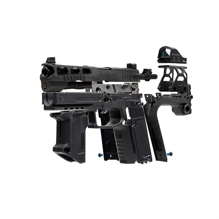 Das Strike Modular Chassis (SMC) ist kein Feuerwaffenprodukt, sondern ein Griffmodul/Chassis-System, das mit dem SIG SAUER P320 FCU und einer vom Benutzer bereitgestellten vollständigen Slide funktioniert. Bitte überprüfe die lokalen und staatlichen Gesetze vor dem Kauf.