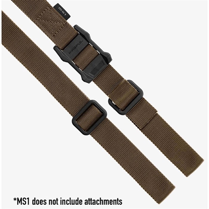 All new for 2014, the MS1 Sling System takes the Magpul multi-mission sling concept to new levels of function, capability, and modularity. The entire system is based on the MS1, a dedicated two-point sling built around our innovative new slider, which provides rapid sling adjustments without the tails, loops, or bulk of other solutions. Even while wearing gloves, the new slider is faster, easier, and lower profile than previous slings, but your sling setting stays put, even under load. The MS1 comes without connecting hardware so you can choose what you need for your specific application. Magpul Paraclips and push-button QDs are available individually to complement our selection of sling attachment points. For the option to convert to one-point use, simply add the appropriate one-point adapter that works with your choice of hardware. Melonite™ and manganese phosphate finished steel with custom snag-free high durability 1-1/4" webbing. Made in U.S.A. Available in Black, Coyote and Ranger Green.