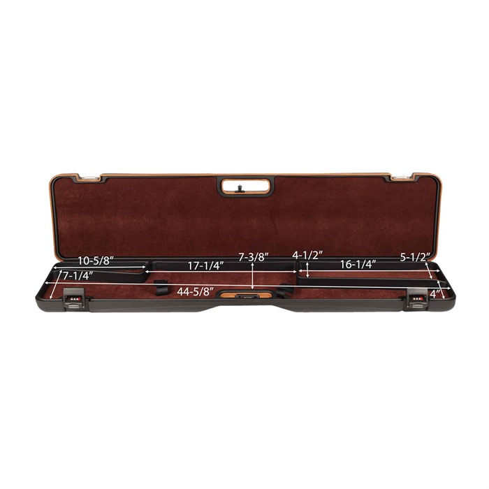 The Negrini 1619LUNGA/5517 compact scoped rifle case is internationally certified and tested for air travel. Like the popular 1619LX/5287, we made this case more affordable. The rifle case is constructed with a double-wall ABS with cushioning on the top and bottom. The compact bolt action rifle case holds a single scoped rifle with an overall length of 44″. The compact scoped rifle case has separate compartments for gear and accessories. It’s the best case for all Ruger American rifles, T/C bolt action rifles, Winchester, Browning X-Bolt and other bolt action style rifles. Limited lifetime warranty. Barrel length: Up to 24in LXX – Leather Trim Hard walled interior with padded and upholstered top and bottom Accessory or bolt storage Integrated handle Fitted compartment for single scoped rifles or other long guns 1x steel composite TSA accepted combination lock 2x Recessed Nylon reinforced polymer/steel locks