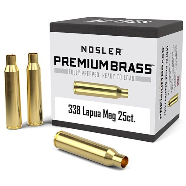 NOSLER 338 LAPUA MAGNUM PREMIUM BRASS Nosler® Premium Brass is designed for those who want to take finding the perfect load into their own hands. Fully prepped and ready to load, we’ve gone ahead and done the meticulous case prep work for you. Each piece is chamfered, deburred, checked for proper alignment, sized and trimmed to proper length. The brass is then hand-inspected to ensure exact dimensional standards and tolerances are met, allowing for maximum accuracy and consistency. Serving shooters time after time without sacrificing performance, Nosler® Premium Brass is made with quality materials for optimum case life and unmatched reloadability. Nosler takes a few extra steps with their brass to make it a premium component for the handloader. The brass is first weigh-sorted to within + or - 0.5 grains, then the flash holes are deburred. Nosler completes the case prep with neck sizing and chamfering the inside and outside of the case mouth. All Nosler unprimed brass bears the Nosler headstamp. FEATURES Fully prepped, ready to load. Case mounts chamfered and deburred Hand-inspected and weight-sorted Flash holes are deburred and checked for proper alignment Full length sized and trimmed to proper length