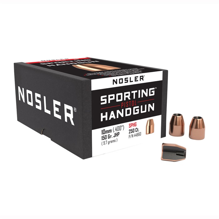 ASSURED STOPPING POWER™ 10MM (0.400") JACKETED HOLLOW POINT PISTOL BULLETS Whether you punch paper, shoot steel or use your handgun for hunting, Nosler ensures you have the very finest in accuracy, consistency and overall quality. Our Assured Stopping Power™ bullets are designed with a skived copper-alloy jacket and hollow point for rapid and consistent expansion. The bullet’s pure lead core is encased in the copper-alloy jacket for maximum bullet stability and balance while further enhancing accuracy. Like their premium rifle bullets, Nosler hand-inspects all ASP bullets for quality assurance and then polishes them to a bright finish.