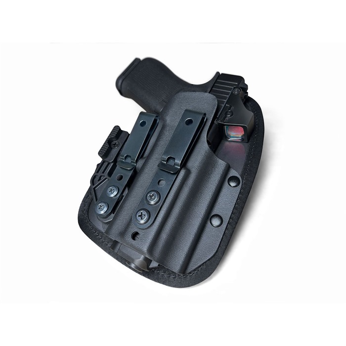 Die OMNICARRY MULTI-FIT OUTSIDE-THE-WAISTBAND HOLSTERS bieten dir eine universelle Lösung für das verdeckte Tragen deiner Handfeuerwaffe. Egal ob du eine Fullsize, kompakte oder sub-kompakte Pistole hast, dieses Holster passt perfekt!