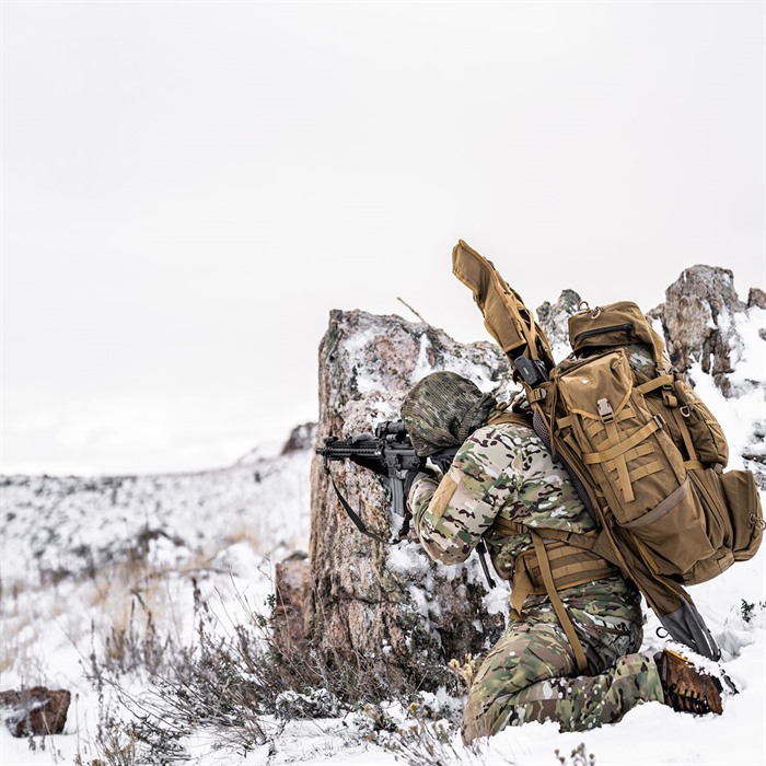 Der Eberlestock G4 Operator Pack ist mit dem Intex II Rahmen des Unternehmens ausgestattet, der zusätzliche Stabilität und Sicherheit bietet. Er verfügt über eine klappbare Gewehrtasche und bietet Platz für Funkgeräte, Laptops, Satellitenkommunikationsgeräte oder sogar Mörsergranaten.