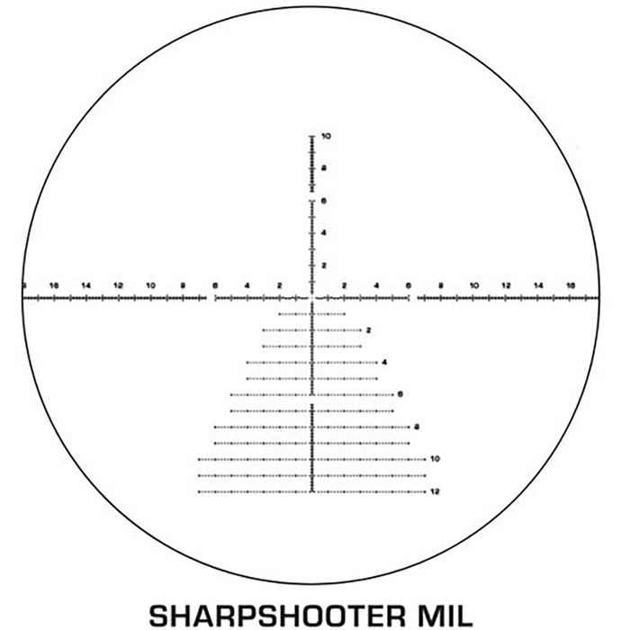 - Die Sharpshooter FFP gravierten Absehen sind für präzises Messen und Halten auf lange Distanz konzipiert