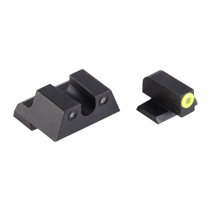 Night Fision’s Perfect Dot sights for Canik TP9-series pistols feature design upgrades that make them brighter, more vivid, and more durable than traditional night sights. Like all night sights, Perfect Dots use self-illuminating Tritium to get the "always on" glow that makes them so effective. The difference is PDs have 30% MORE Tritium in them, so they are unusually bright. And the bold front sight draws the eye, encouraging fast, instinctive "Front Sight Focus" to keep your eyes on the target. The Tritium insert isn’t surrounded by a painted-on ring, but rather one made of a daylight fluorescing material that produces optimum visibility in daylight. The result is what the Night Fision folks call the "Perfect Dot". Provides maximum visibility in both nighttime AND daylight conditions, so when the pressure is on, you’ll locate your Canik TP9’s sights quickly - and get them on target fast. Robust machined 4140 steel sight bodies - far stronger than the factory plastic Matte black Nitride finish - excellent wear- and corrosion-resistance Tritium vial has extra protection from knocks & dings Variety of front dot colors & rear notch configurations to choose from (see below) Sold as front/rear pairs only We are offering Perfect Dot sights to fit TP9SFL / TP9SFX pistols in the factory heights. A separate model fits TP9SA / TP9SF / TP9SF Elite Canik pistols. Options include a choice of Square or U-shaped rear notch in plain Black (no inserts) or with Tritium dots (Clear) on either side of notch. Front dot options include a choice of Orange or Yellow outline around the Tritium dot. Read the listings below carefully before ordering. With so many options available, you can fit your Canik TP9 with a "Perfect Dot" night sight configuration that’s... perfect for you.