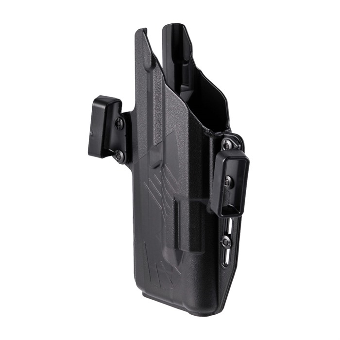 Die körpernahe Krümmung dieses Holsters wird durch modulare Gürtelschlaufen erreicht. Jedes Holster enthält drei Paare von 1,5” Gürtelschlaufen (LH 10 Grad Neigung, RH 10 Grad Neigung und ambi 0 Grad Neigung), die es dem Benutzer ermöglichen, den ambidextrösen Holsterkörper für Links- oder Rechtshänder zu konfigurieren, mit entweder 0 Grad oder 10 Grad Neigung.