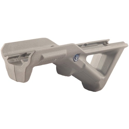 Low-profile forward grip/hand stop takes advantage of natural body mechanics to give the shooter more precise control, faster pointing, and less operator fatigue. The Magpul AFG™ (Angled Fore-Grip) positions the support hand close to the centerline of the bore for maximum recoil control to aid in fast, accurate follow-up shots. Provides a consistent reference point for finding the correct hand position quickly when mounting the weapon under stress. The natural, ergonomic hand position with the palm facing up results in better blood flow than the “clenched fist” stance often used with vertical grips that leads to fatigue and loss of sensation during long periods in the ready position. Improves on the “thumb break” hold often used with standard vertical grips by allowing the thumb to rest comfortably alongside the top rail, pointing forward, with the rest of the hand in full contact with the forend. Heavy-duty reinforced molded polymer construction stands up to the hard knocks of tactical operations, and deep, molded-in grooves help you maintain a firm grip even with wet hands. Interchangeable inserts give the choice of a straight, uninterrupted gripping surface or one with a convenient ledge to support the index finger. Slides over any Picatinny-style rail and locks securely in place with a hardened steel crossbolt. The original AFG1™ provides a large grasping surface and covers approximately 5½" of rail.