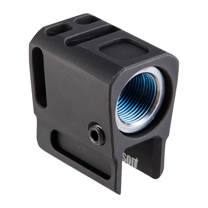 Designed fo fit 1/2 x 28 threaded barels, the Samson Pocket Comp for the M&P Shield and Shield 2.0 9mm installs in minutes without the need for gunsmithing. The Samson design uses a threaded interface which protects the barrel threads unlike conventional compensators. The Samson Pocket Comp for M&P 9 Shield blends with the aesthetic lines of the slide, creating the image of a slide extension. Machined from 7075 aircraft-grade billet, the Pocket Comp is Mil-Spec hard coat anodized for durability. The Pocket Comp efficiently reduces felt recoil and muzzle rise, allowing faster recovery between shots. It functionswit the factory recoil spring using a wide range of bullet weights and velocities (124gr or heavier is recommended, may work with 115gr depending on manufacturer and/or environmental conditions). Threaded barrel NOT included Reduces felt recoil and muzzle rise, allowing faster recovery between shots Ideal for iron-sight or red-dot equipped pistols Threads on to any 1/2x28 threaded 9mm barrel (not included) Machined from aircraft-grade 7075 billet with mil-std hard coat anodize for durability No-gunsmithing, easy installation/removal Functions with factory recoil spring using a wide range of bullet weights and velocities (124gr or heavier, may work with 115gr depending on manufacturer and/or temperature)