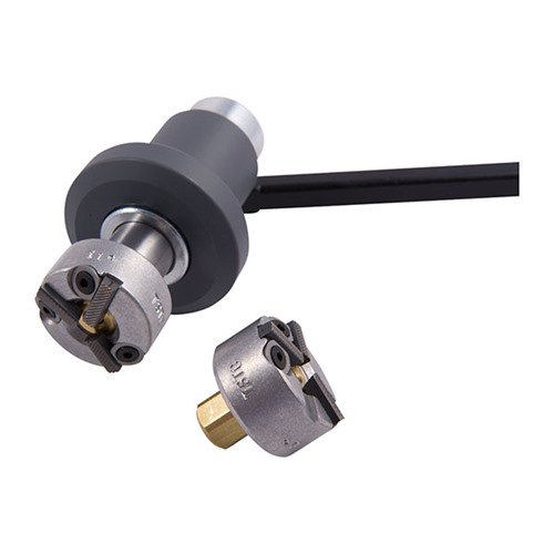 Der Handtreiber mit einem federbelasteten Adapter ermöglicht eine schnelle, lathefreie Methode, um eine perfekte Mündungskrone zu schneiden. Die erweiterbaren Piloten sorgen für eine präzise Ausrichtung des Fräskopfs mit dem Lauf. Das Set beinhaltet zwei Fräsköpfe für 0° oder 11° Kronen, jeder mit präzisionsgeschliffenen drei-Klingen-Einsätzen, die schnell und einfach auch das härteste Material entfernen und eine perfekt quadratische Laufkrone bieten.