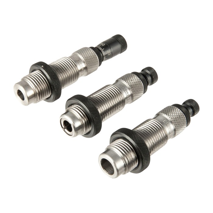 Das Redding Premium Handgun 3-Die Set beinhaltet eine Titanium Carbide-Sizing Die und eine neu gestaltete Expander Die, die mit dem einzigartigen Redding Expander Plug ausgestattet ist, der jetzt mit TiN (Titanium Nitride) beschichtet ist. Diese Beschichtung erhöht die Oberflächenhärte, Schmierfähigkeit und Haltbarkeit.