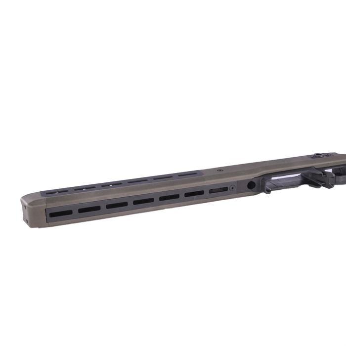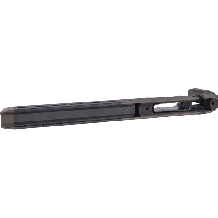 Maintaining the most important features of Magpul’s original Pro 700L, the Pro 700L Lite strikes a balance between features and cost without sacrificing performance. As the name suggests, the Pro 700L Lite blends the original Pro 700L Chassis and the PRS Lite stock to create a simplified rear end with a strong foundation – passing on the value and weight savings to you. The streamlined design weighs in at 4.5 pounds, a full pound less than its predecessor, but still packs a complete set of features that elevate your rifle’s performance. The Pro 700L Lite provides an optimized shooter interface with 0.8” of comb height and 1.4” of LOP adjustments (LOP measures 13.0” -14.4”). The low-profile rubber butt-pad is adjustable for height and cant, providing an extremely stable interface with the shooter’s shoulder. Sling attachment options include an ambidextrous 1.25” footman’s loop, a reversible QD sling swivel cup, and space for another optional QD sling swivel cup. The injection-molded polymer grip has a 5-degree forward edge sweep and enlarged palm swell with a 7-degree aft edge sweep for enhanced user comfort, and it includes a .75” fore/ aft adjustment range using a common hex wrench. An additional grip is included, offering a more aggressive sweep and enlarged palm swell for the shooter who is more inclined to a less vertical grip interface (8-degree forward / 20-degree aft edge sweep). The Pro 700L Lite surrounds its billet-aluminum chassis with Magpul polymer for enhanced ergonomics, strength, and sound mitigation. Built around the user, it is fully ambidextrous at the swap of a bolt retainer plate, and the vertical grip can be adjusted for various trigger reaches. The included large trigger guard can accommodate usage with gloves and aftermarket triggers. The AICS-pattern magazine well features an ambidextrous mag release and has a front barricade stop to prevent the rifle from resting on the magazine when using barricade support. Up front, there are numerous M-LOK slots (left-6 / right-6 / bottom-7) allowing you to mount whatever accessories your loadout calls for. Extremely versatile and adaptable, the Pro 700L Lite turns your long action, 700-pattern rifle into the perfect bolt action precision machine. FEATURES Fully machined aluminum fore end and bedding block AICS compatible bottom metal Vertical grip with adjustment for trigger reach Large trigger guard accommodates gloves and aftermarket triggers Compatible with left and right-handed actions Comb height, LOP, and butt pad adjustment from PRS Lite Injection-molded polymer grip with 5-degree forward edge sweep and enlarged palm swell with 7-degree aft edge sweep for enhanced user comfort combined with a .75” fore/aft adjustment range using a common hex wrench Additional grip option included with a more aggressive sweep and enlarged palm swell for the shooter that is more inclined to a less vertical grip interface (8 degree forward / 20-degree aft edge sweep) Multiple sling attachment points (an ambidextrous 1.25” footman’s loop, a reversible QD sling swivel cup, and a space for another optional QD sling swivel cup Made in the USA COMPATIBILITY Compatible with Remington® 700 Long Action and other Remington 700 Long Action footprints. Buttstock/cheek riser must be removed on the Pro 700L Lite before the user can remove the bolt from the action. Ships with MAG698 (Magnum Long Action AICS 5-round PMAG)