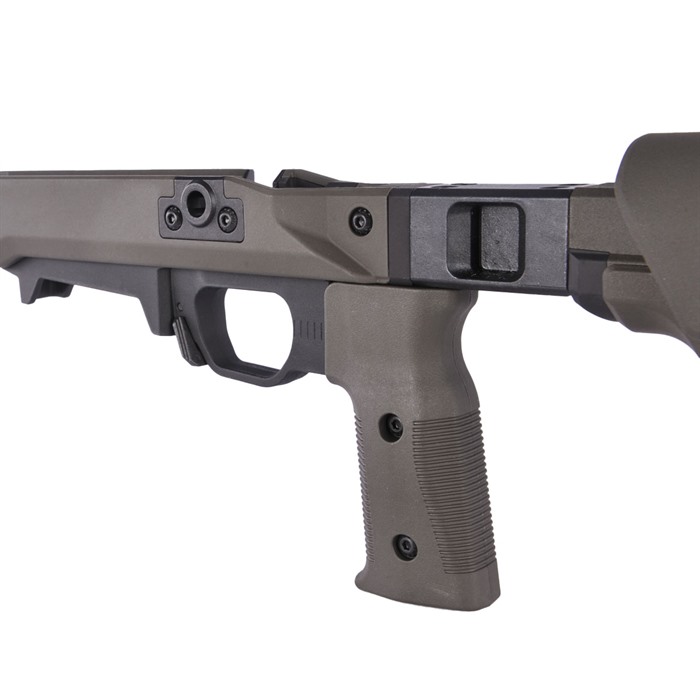 Das Pro 700L Lite kombiniert das originale Pro 700L Chassis mit dem PRS Lite Stock und schafft so ein vereinfachtes Heck mit einer soliden Basis – die Wert- und Gewichtseinsparungen kommen dir zugute. Es bietet eine optimierte Schützen-Schnittstelle mit 0,8 Zoll Höhe der Wangenauflage und 1,4 Zoll LOP-Anpassungen (LOP misst 13,0 - 14,4 Zoll).