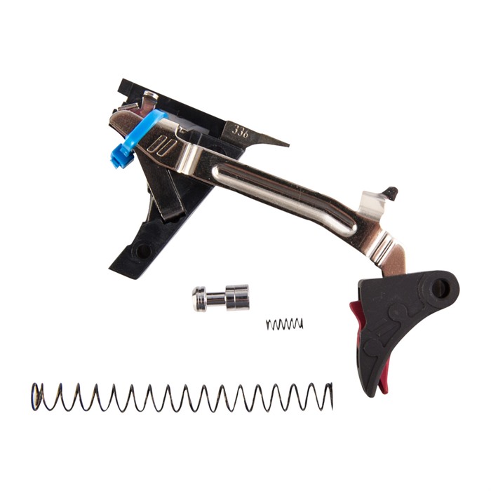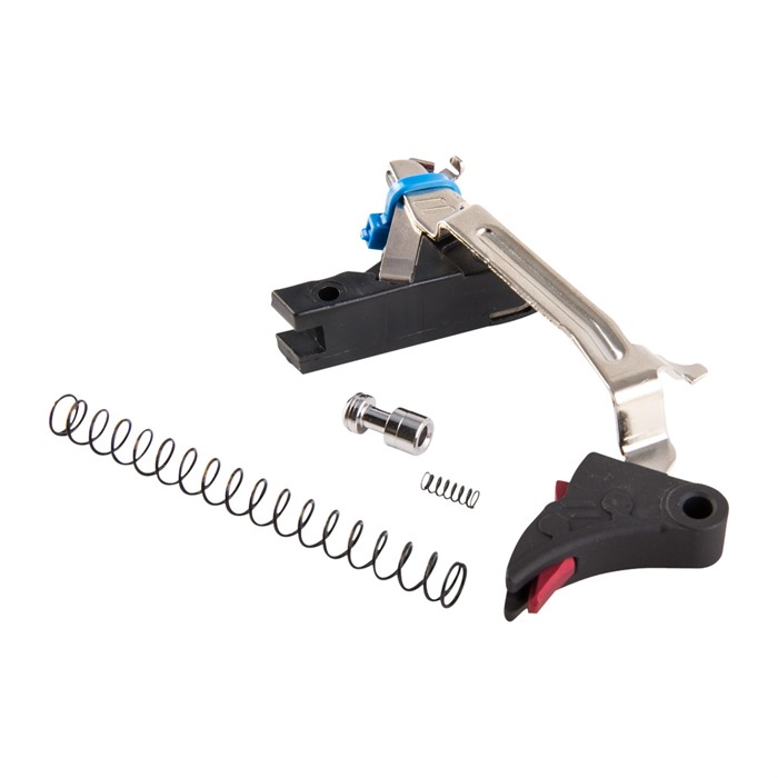 Das Kit enthält alles, was du brauchst: den Abzug, den Triggerbalken, den Triggerblock, den Auswerfer, den Connector, die Abzugfeder sowie einen leichten, aus Edelstahl gefertigten Sicherheitsplunger und eine Feder, um den Abzug weiter zu verfeinern. Es kommt mit einer reduzierten Schlagfeder für ein leichteres Gefühl beim Abzug für Wettkämpfe und der serienmäßigen Schlagfeder für den täglichen Einsatz und die Dienstnutzung.