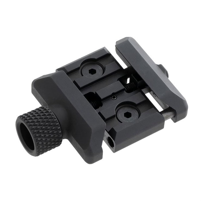 Ein texturiertes Knopf ermöglicht es dir, die Platte bei Bedarf anzupassen, und sitzt so, dass er keine Gefahr für dein Zubehör darstellt. Der QR Rail Grabber passt auf alle Picatinny und RRS/ARCA Oberflächen.