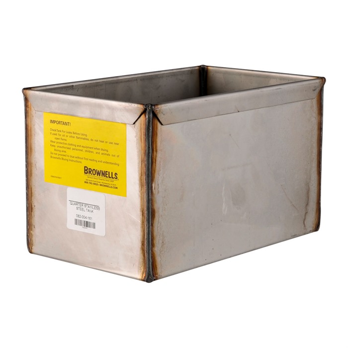 Herzlichen Glückwunsch zu Ihrem Kauf des QUARTER TANK BROWNELLS QUARTER TANK STAINLESS STEEL. Dieses Produkt ist speziell für das NitreBlue Bluing von Handfeuerwaffenläufen und anderen kleinen Teilen konzipiert. Um sicherzustellen, dass Sie das Produkt sicher und effektiv nutzen, beachten Sie bitte die folgenden Sicherheitshinweise.