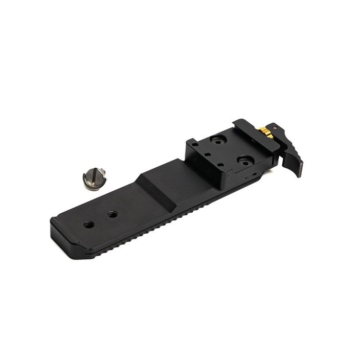 Zusätzlich kann der Arm vom Gewehr abgenommen und an jedes Stativ mit einem ARCA-Kopf für den stationären Einsatz angebracht werden. Das 17S-Montagemuster ermöglicht die Verwendung eines der Arcalock-Klemmen von Area 419 oder einer QD-Picatinny-Hebelklemmung.