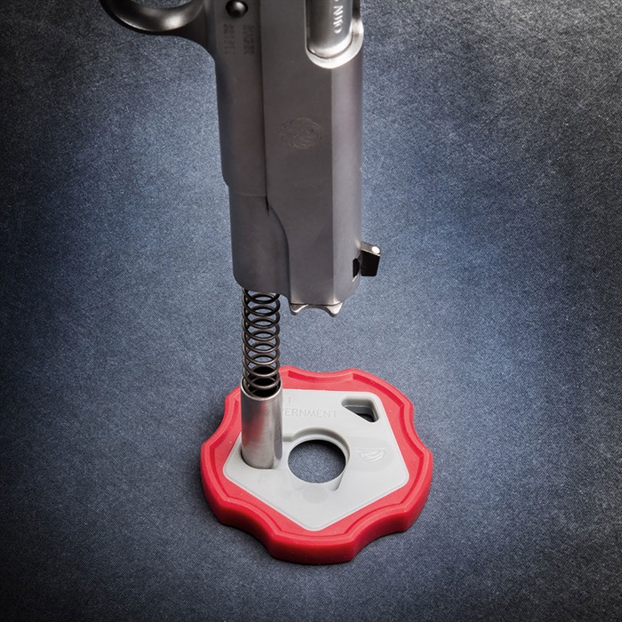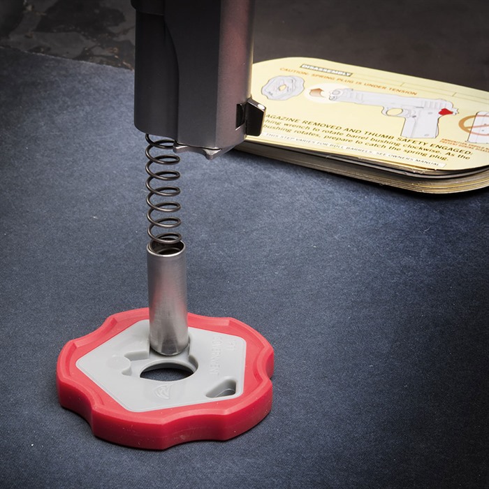 Die Entfernung des Barrel Bushings deines 1911 war noch nie so einfach. Mit einem einfachen Druck und Dreh ist es erledigt. Das geniale Design hält die Feder und den Plug an Ort und Stelle – und dich aus dem Zahnarztstuhl!