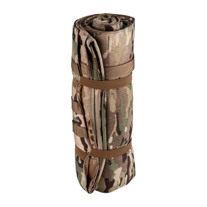 RECON SHOOTING MAT Shooting off a mat is nice, but it's impractical for most field shooters and hunters, since many shooting mats are too bulky and cumbersome to actually carry into any real scenario. However, Crosstac is addressing the issue with the design of its Recon Shooting Mats, which are built to be lightweight and compact enough for shooters to carry with them wherever they go. Each Crosstac Recon Shooting Mat features a sewn-in bipod-support rail at the front edge of the mat, which means that shooters can load their bipod without worrying about it slipping off the edge of the mat. The mat itself is made from 500 Denier cordura fabric, which is tough enough to survive rough field conditions. The mat weighs only 1.2 pounds and measures 14 inches by 3 inches when rolled up, allowing for easy carry. In a pinch, the Crosstac Recon Shooting Mat can even be deployed as an improvised shelter, thanks to the included grommets that allow the mat to be pinned down or tied out. The multi-cam finish enables it to be used as instantaneous camouflage in a pinch, if needed.