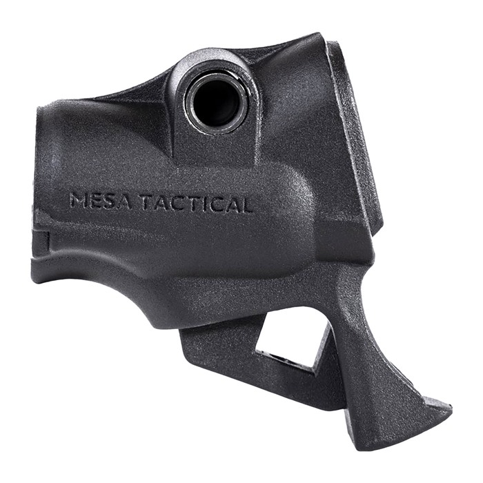 Die Teleskop-Schulterstützen-Systeme von Mesa Tactical ersetzen die Werkschulterstütze der Schrotflinte durch einen aus investitionsgegossenem Aluminium gefertigten Adapter, an den standardmäßige AR-15-Griffe und Teleskop-Schaftstützen zuverlässig angebracht werden können. Die LEO Stock Adapter bieten eine niedrigere Stock-Höhe, die die Verwendung von Eisenvisieren oder dem vorderen Perlkorn ermöglicht.