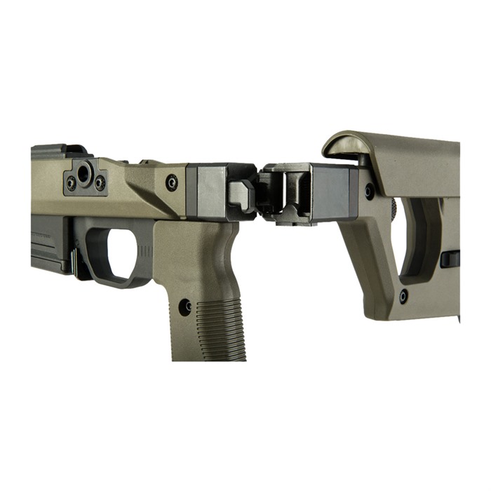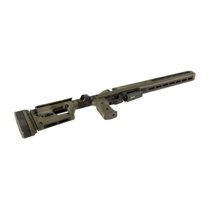 Das Pro 700 Gewehrchassis von Magpul vereint innovative Technik und präzise Bearbeitung, um ein voll ausgestattetes Präzisionsgewehrchassis für Remington 700 Aktionen zu schaffen. Basierend auf einem vollständigen Billet 6061-T6 Aluminium-Skelett, ist das Magpul Pro 700 Gewehrchassis mit Magpul-Polymer verkleidet, um Komfort, Geräuschdämpfung und Ergonomie zu gewährleisten. Mit dem Austausch einer Bolzen-ausschnitt-Platte, einem umkehrbaren Wangenauflage und einem umkehrbaren Scharnier ist das Chassis vollständig beidhändig nutzbar, sodass auch Linkshänder ihren Spaß haben! Das Pro 700 Gewehrchassis verfügt über einen spritzgegossenen Polymergriff mit einer 5-Grad nach vorne geneigten Kante und einer vergrößerten Handballenauflage mit einer 7-Grad nach hinten geneigten Kante für erhöhten Benutzerkomfort, kombiniert mit einem Verstellbereich von 0,75 Zoll vor/zurück mit einem gängigen Innensechskantschlüssel. Benutzer können die Wangenhöhe auf 1 Zoll mit einem sekundären Verriegelungsknopf einstellen, wodurch Bewegung der Wangenauflage ausgeschlossen wird. Ein integriertes AICS-Muster-Magazin aus verstärktem Polymer ist enthalten und optimiert für PMAG® 5 & PMAG® 10 7.62 AC™ Magazine sowie die meisten anderen AICS-Muster-Kurzlaufmagazine. Umkehrbares, langlebiges Druckknopf-Scharnier zum Falten des Schaftes. Gesamter LOP-Einstellbereich: 13,25”-15,125”. Höhenverstellung der Schulterstütze: .90”–1.33”, 5 Grad nach links oder rechts verstellbar. Wangenauflage: 3-stufige Vor-/Rückverstellung von +.375”, 0” und -.375”; links- oder rechtsseitig verstellbar. Robuste, gussstahl Rotationslimitierte QD-Gurtbefestigungen mit Melonite®-Finish passen auf bis zu 1,5” Druckknopf-Gurtbefestigungen. M-LOK Slots verfügbar für Zubehörmontage. Der Magazinrelease ist aus melonite-behandeltem Stahl, der flach und beidhändig nutzbar ist. Eine große Abzugsbrücke am Pro 700 akzeptiert die meisten werkseitigen und nachrüstbaren gekrümmten oder flachen Abzüge und kann mit Handschuhen verwendet werden. Ein melonite-behandelter Stahl-Magazinrelease ist flach und beidhändig nutzbar. Das Magpul Remington 700 Pro Chassis passt zu einem MTU-Laufprofil und ist in Schwarz, Flat Dark Earth und OD Green erhältlich. Das Remington 700 Pro Chassis wäre ein großartiges Upgrade für eine bestehende Waffe oder für deinen nächsten Build!