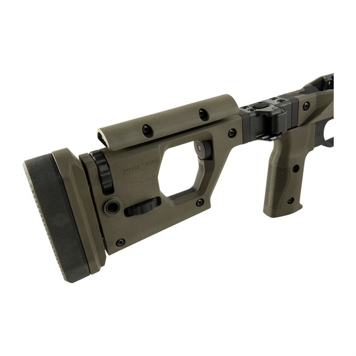 Magpul’s Pro 700 Rifle Chassis combines innovative engineering and precision machining to create a full featured precision rifle chassis for Remington 700 actions. Based on a full billet 6061-T6 aluminum skeleton, the Magpul Pro 700 Rifle Chassis is clad in Magpul polymer for comfort, noise mitigation, and ergonomics. With the swap of a bolt-cutout plate, a reversible cheek riser, and reversible hinge, the chassis is fully ambidextrous, ensuring that left handed shooters are included in the fun! The Pro 700 Rifle Chassis features an injection molded polymer grip with 5-degree forward edge sweep and enlarged palm swell with 7-degree aft edge sweep for enhanced user comfort combined with a .75” fore/aft adjustment range using a common hex wrench. Users can adjust the comb height to 1” with a secondary locking knob, eliminating movement to the cheek riser. An Integrated AICS pattern magazine made of reinforced polymer is included and optimized for PMAG® 5 & PMAG® 10 7.62 AC™ magazines as well as most other AICS pattern short action magazines. Reversible, durable push-button hinge to fold the stock Overall LOP adjustment range: 13.25”-15.125” Butt pad height adjustment: .90”–1.33”, adjustable 5 degrees left or right Cheek riser: 3-position fore/aft adjustment of +.375”, 0” and -.375”; left- or right-handed adjustable Durable cast steel rotation limited QD sling swivel mounts with Melonite® finish fits up to 1.5” push button swivels M-LOK slots available for accessory mounting The magazine release is melonite treated steel that is low-profile and ambidextrous A large trigger guard found on the Pro 700 accepts most factory and aftermarket curved or flat triggers, and can be used with gloves. A melonite treated steel magazine release is low-profile and ambidextrous. The Magpul Remington 700 Pro Chassis fits up to an MTU barrel contour and is available in black, flat dark earth, and od green. The Remington 700 Pro Chassis would be a great upgrade to an existing gun, or for your next build!
