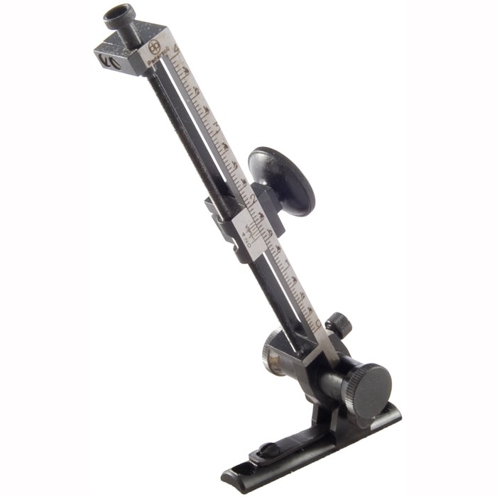 Das Visier ist präzise aus Stahl gefertigt und wird mit den mitgelieferten Setschrauben am Tang befestigt. Es kann bei Nichtbenutzung heruntergeklappt werden. Das Universal-Modell ist in mittlerer Höhe von 2" und langer Höhe von 3" erhältlich.