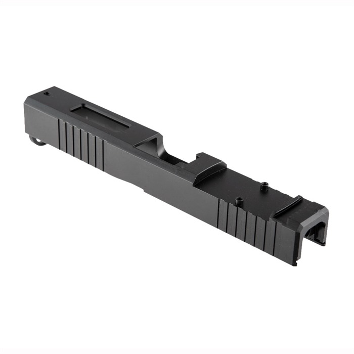 Our RMR Slide for Glock® 17 Gen4 pistols features distinctive, wraparound front cocking serrations that aid in manipulating the slide to check the chamber or clear a jam. Let's be honest: the serrations also look cool! These slides have a built-in mount for the popular Trijicon RMR red dot sight and certain Holosun sights (see list below), enabling shooters to get on-target faster and more easily than they can with standard pistol sights. All RMR Slides also have Glock® factory front and rear sight dovetails for backup iron sights. To get proper co-witnessing with the RMR, you will need to also install suppressor-height iron sights. You can get your RMR Slide for Glock® 17 Gen4 with a "window" cutout on top between the front serrations (so no wraparound serrations on this one) that enhances airflow to keep the barrel cooler - ideal for hard-working action competition pistols. Plus, if you have an upgraded barrel with a contrasting finish or a unique exterior pattern (fluting, spirals, "flames," etc.), the window helps your gun stand out from the sea of matte black on the firing line! Each RMR Slide for Glock® 17 Gen4 pistols starts life as a billet of 17-4 stainless steel that is machined to Glock® factory specifications inside, so it’ll fit factory frames and accept factory or aftermarket barrels and Gen4 internal parts. Each slide is heat-treated to Rockwell "C" 41-44 for enhanced surface hardness and excellent resistance to galling and wear. A tough, non-reflective, Black Nitride finish resists surface scuffs and scratches. Fits Gen4 Glock® 17 pistols & clones Machined from 17-4 stainless steel billet Tough Black Nitride finish Choose traditional Solid top or distinctive top Window cutout Pre-cut Trijicon RMR red dot sight mounting slot Also accepts Holosun HE508T, HS507C & HS407C red dots A Brownells RMR Slide is an excellent upgrade that takes a factory Glock® 17 Gen4 from good to GREAT. It can also serve as the perfect "top half" for a brand-new custom gun built on the popular Polymer80 80% frame. Brownells Gun Tech™ Note: Channel liner required for these slides. Channel liner is a press fit and requires a tool to install. We recommend #777-100-017. Includes patented optic cut technology pioneered by ZEV Technologies. Patent No. RE47335