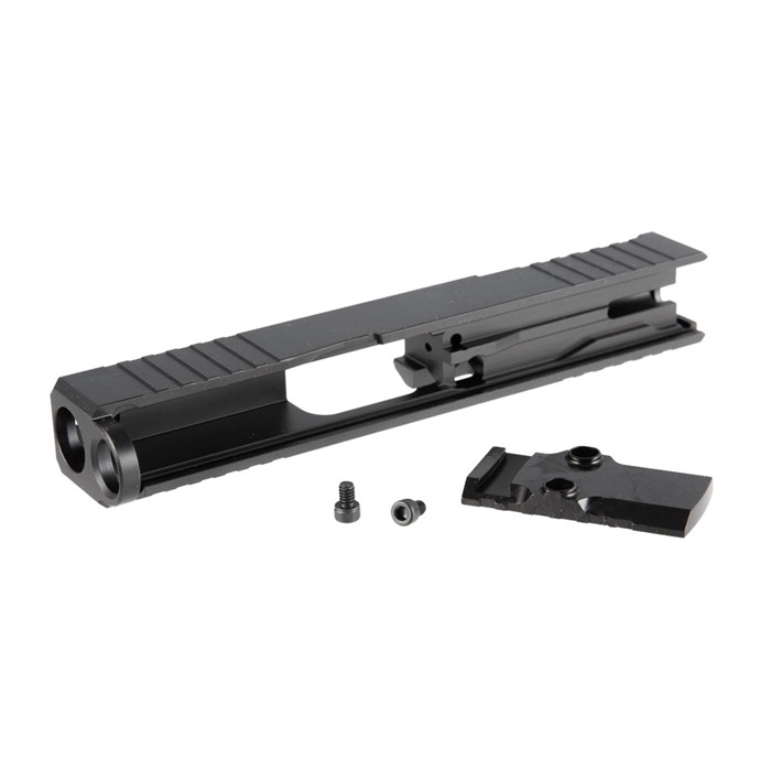 - Intern sind die Abmessungen identisch mit den OEM-Slides von Glock, sodass du Fabrik-Glock-Teile in den Slide einsetzen kannst, um deine vollständige Waffe zu bauen.