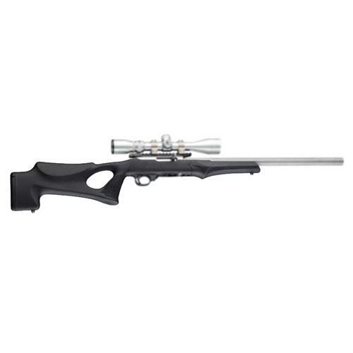Hogue is well known for their popular line of OverMolded® stocks, and the Tactical Thumbhole stock for the Ruger 10-22® does not disappoint. The Tactical Thumbhole model features a futuristic thumbhole/pistol grip design, an integrated cheek weld, a unique bench rest hook and a soft rubber butt pad. Designed for quick and comfortable target acquisition with your preferred optic, the OverMolded® rubber is a durable, comfortable, superior, recoil-taming material that’s impervious to dirt, grime and moisture. Tactical Thumbhole stock has a .920 barrel channel for a heavy barrel. OverMolded® rubber material Thumbhole styling .920 barrel channel Setup your Ruger 10-22® with the Hogue Tactical Thumbhole stock today.