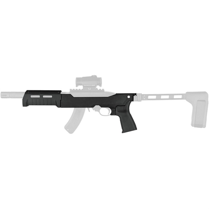 Designed in partnership with Unity Tactical®, the SB22 Takedown Kit is a lightweight, modular chassis for the Ruger® 22 Charger , Ruger 10/22®, and its clones. Able to accept M1913-compatible braces and stocks, the SB22 Takedown Kit is the key component to the perfect pack gun. Note – the firearm, brace, and other accessories shown are not included. FEATURES Lightweight, polymer chassis with aluminum insert, Picatinny (M1913) rear, and integral, ambidextrous QD sling socket Accepts standard AR-15 pistol grips (Reptilia® CQG™ Grip included) Includes Picatinny (M1913) Bridge Mount, Flat Top Cover, and M-Lok™ compatible handguard Proudly made in the USA KIT INCLUDES Polymer Chassis Reptilia® CQG™ Grip Picatinny (M1913) Bridge Mount Flat Top Cover M-Lok™ Compatible Handguard