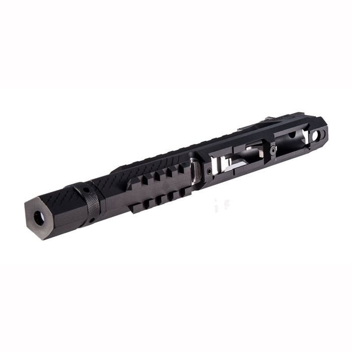 Volquartsen's LLV Competition Upper With Sights turns the already superb Ruger® Mark IV™ into an outstanding .22 target handgun. The receiver and barrel shroud are precision machined from a single piece of aluminum alloy to ensure perfect receiver-barrel alignment. The Volquartsen Ruger® Mark IV™ LLV Competition Upper With Sights is fitted with a match-grade, stainless steel barrel that has a honed and lapped bore for superb accuracy potential and easy cleaning. Comes with "iron" target sights installed or mount an optic on the Picatinny optic rail Contour & weight distribution optimized for comfortable balance in the hand Wear-resistant Type III hardcoat anodized finish on receiver Threaded muzzle - screw-on thread protector included 4.5" barrel length Stainless steel breech face withstands many thousands of firing cycles FFL required for purchase Volquartsen's LLV Competition Upper with sights is ready to install on a standard Ruger® Mark IV™ grip frame ("lower" receiver). It comes with a Picatinny rail machined into the top of the barrel for installation of an optical sight. You may also purchase it with adjustable target sights that can be used with, or in place of, an optic.