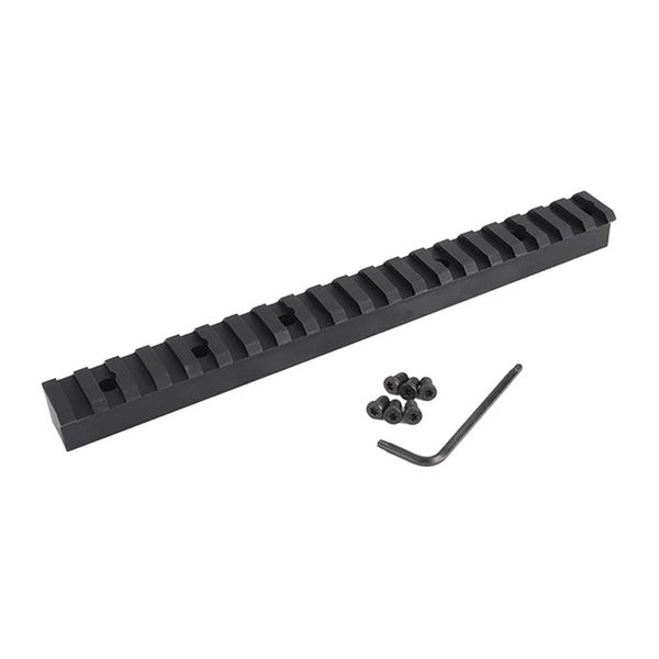 EGW empfiehlt, die Lochabstände in deinem Empfänger zu messen, um sicherzustellen, dass sie mit den veröffentlichten Abmessungen übereinstimmen. Die Picatinny-Kreuzschlitze verlaufen über die gesamte Länge der Schiene, was dir Flexibilität beim Montieren von Zielfernrohrringen und anderen Zubehörteilen bietet.