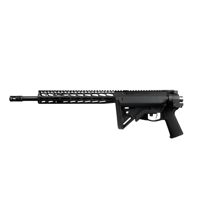 SA-15 Folding 16" Pro Rifle built on the Shield Arms Folding Lower Receiver (FLR) for compact storage. This patented system allows the firearm to fold and does not use an adapter. This system is lighter, stronger, and shorter in overall length versus popular folding adapters. Additionally, this system does not modify the carrier. Build Specifications Upper/Lower: 7075-T6 billet aluminum upper/lower Barrel: 16" length, 5.56 NATO Chamber Mid-length length gas system 1:7 RH twist 4150 CMV Stress relieved after rifling Black Nitride finish M4 extension .076" gas port Bolt Carrier Group Black Nitride finish Shot peened Magnetic Particle Inspected 9310 5.56/.223 bolt 8620 M16 carrier Handguard: Shield Arms 13" MLOK ALG Defense Advanced Combat Trigger (ACT) Safety: Radian Safety Selector Mil-Spec End Plate Grip: Magpul MOE SL Gas Block: Shield Arms Adjustable Gas Block Muzzle Device: A2 Buttstock: B5 Systems Bravo Charging handle: Radian Charging Handle Weight: 6 lbs 10 oz Ships with 1 magazine *ACCESSORIES SHOWN IN PICTURES ARE NOT INCLUDED*