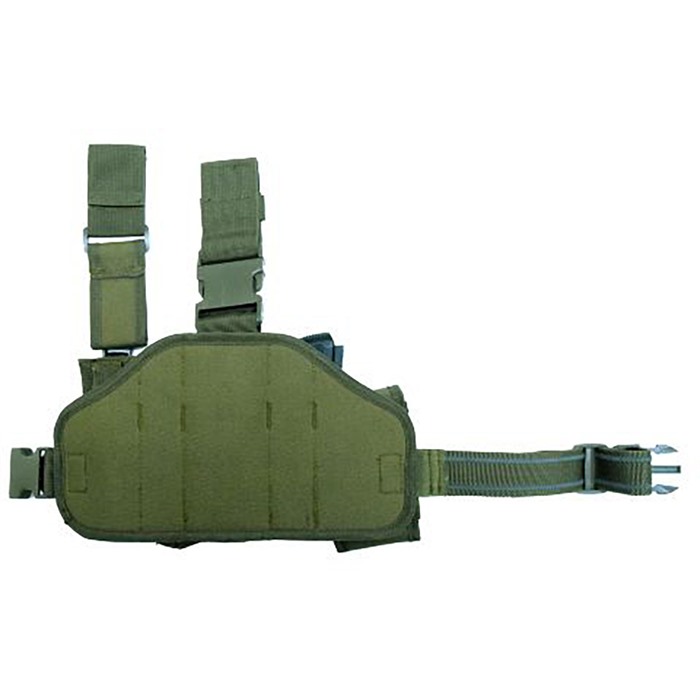 Dieser schwere, taktische Drop Leg Holster ist so konzipiert, dass er direkt an deinem Oberschenkel sitzt. Der verstellbare Oberschenkelgurt passt sich den meisten Beinen an, während die Schnellverschluss-Gürtelschlaufe eine schnelle Abnahme ermöglicht. Jeder Holster wird mit einem MOLLE-angebauten Magazintäschchen geliefert, um ein zusätzliches Magazin in Reichweite zu halten.