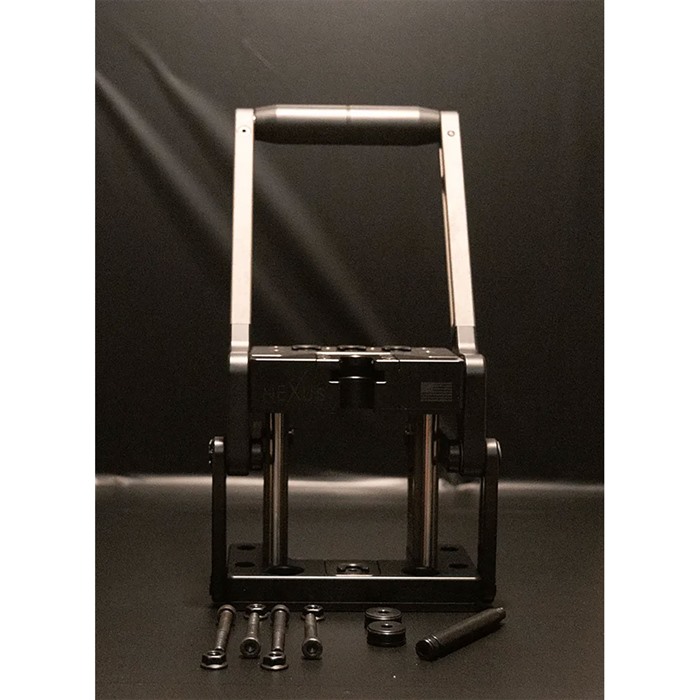 Eine der hochinnovativen Eigenschaften des Nexus Press ist das duale, schwebende Hülsenhaltersystem, das auch werkzeuglos und schnell wechselbar ist. Dies ähnelt der schwebenden Bolzenkopf-Funktion eines maßgeschneiderten Gewehrsystems. Der Hülsenhalter wird bei jedem Einsatz zentriert, dank der „schwebenden“ Fähigkeit des Hülsenhalters. Das System ermöglicht zudem eine .010″ größere Größenanpassung als alle anderen Hülsenhalter auf dem Markt. Wenn du also Probleme hast, nicht genug Größenanpassung aus deinen Matrizen zu bekommen, brauchst du sie nicht mehr zu modifizieren; der Nexus Press nimmt dir diese Kopfschmerzen ab.