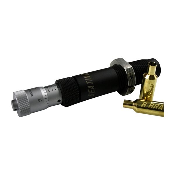 Außerdem wird die Bullet Seating Die von SAC mit einem Mitutoyo-Mikrometerkopf ausgestattet, der .001″ Teilungen für eine Gesamtreise von .500″ bietet, was genauere Anpassungen beim Setzen der Geschosse ermöglicht. Schließlich wurde ein Mikrometertensystem integriert, um ein sehr positives Gefühl beim Drehen des Mikrometerkopfes zu gewährleisten und ungewollte Bewegungen zu verhindern.