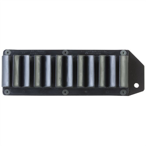 Lightweight, molded-nylon shell carrier puts additional fire power quickly within your reach. Aluminum mounting plate attaches to the side of the receiver using the existing pin/screw holes—no permanent alterations or gunsmithing required. Four- and six-round models available for a variety of popular law enforcement shotguns. Rem. 870/1100/11-87 ESN has a convenient window in the mounting plate that leaves the weapon’s serial number exposed for viewing with the shell holder installed. Designed for armorers and law enforcement agencies who track their firearms by serial number for inventory, maintenance, and record keeping.