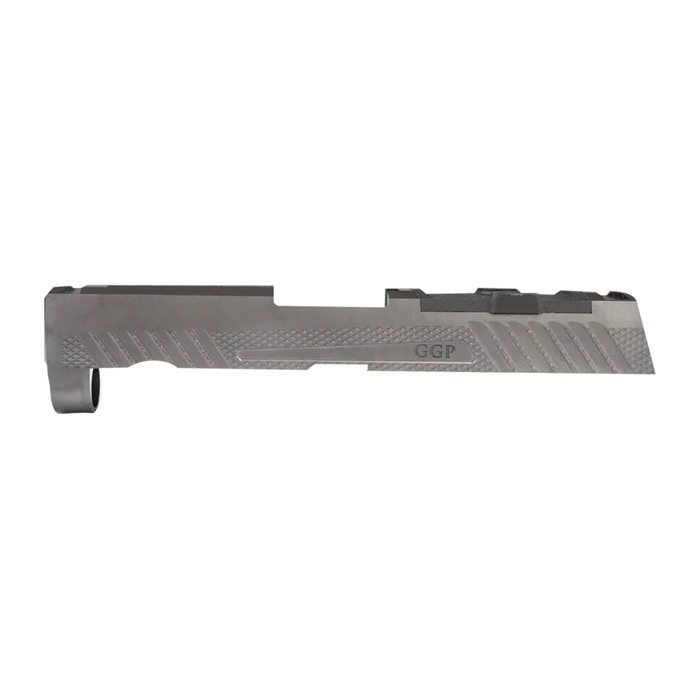 The adoption of the P320® platform by the U.S. Military, as well as many Law Enforcement agencies, professional lead farmers, competition shooters, and firearm instructors led to the development of a new line of GGP aftermarket slides. After all, the P320’s ability to be custom tailored to the individual user’s preferences in grip length, grip size, as well as slide length and sight radius are all highly desirable features. Why stop there, when you can have even more customization options when upgrading to a drop-in GGP320 slide. Just like our GGP17/19 and SPG43 slides, these GGP320 slides offers enhanced aesthetic features, increased grip serrations and an improved coating without compromising function. We also took our hybrid MRDS optic cut and added a third option, the SIG ROMEO1. Now you have to option to use a ROMEO1 as well as a Trijicon RMR or Leupold DeltaPoint Pro right out of the box without using bulky adapter plates that only raise the optic further above the bore axis. Available in Grey or Black DLC finish for corrosive and abrasion resistance, the GGP320 will also be available in FDE Cerakote. The GGP320 is a drop-in install that comes with all the enhancements that professional handgun shooters have come to expect from Grey Ghost Precision. GGP320 SLIDE FEATURES: STRIPPED SLIDE MACHINED FROM 416 STAINLESS STEEL FOR TIGHTER-THAN-FACTORY-TOLERANCES AVAILABLE IN BLACK AND GREY DLC (DIAMOND LIKE COATING) OR FDE CERAKOTE 9MM COMPATIBLE ONLY OPTIC CUT COMPATIBLE WITH LEUPOLD DPP, TRIJICON RMR AND SIG ROMEO1 AND ROMEO1PRO (IF THE SLIDE WAS MADE AFTER JANUARY 1ST 2021) AND SUPPLIED SCREWS/SHIM PLATES Not Compatible with Vortex or Aimpoint Optics INCLUDES G10 COVER PLATE WHEN NOT RUNNING AN OPTIC VERSION 1 SLIDE PATTERN WITH AGGRESSIVE SERRATIONS AN WINDOW CUTS VERSION 2 SLIDE PATTERN WITH CHECKERED TEXTURING AND NO WINDOW CUTS COMPATIBLE WITH SIG P320® FULL-SIZE, X-FIVE*, COMPACT, CARRY AND X-CARRY GRIP MODULES *X-FIVE BARRELS ARE NOT COMPATIBLE WITH GGP320 SLIDES DUE TO ITS PROFILE. PLEASE USE A STANDARD FULL SIZE 320 BARREL. OPTICS NOT INCLUDED COMPLETION PARTS NOT INCLUDED To be used with brass, factory loaded ammunition Weight Compact | 7.76 oz